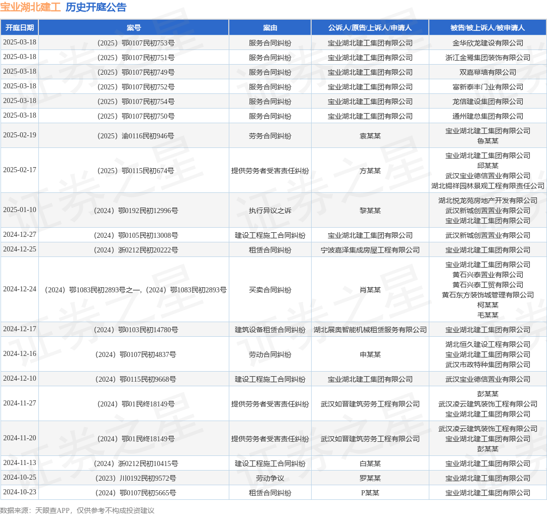 本站消息,根据天眼查APP显示,近日公布了一则宝业湖北建工集团有限公司作为被告/被上诉人的开庭公告,详细内容如下: